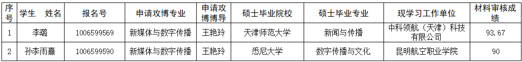 新闻传播学院2026年"申请-考核"制博士入围考核人员名单(新媒体与数字传播)