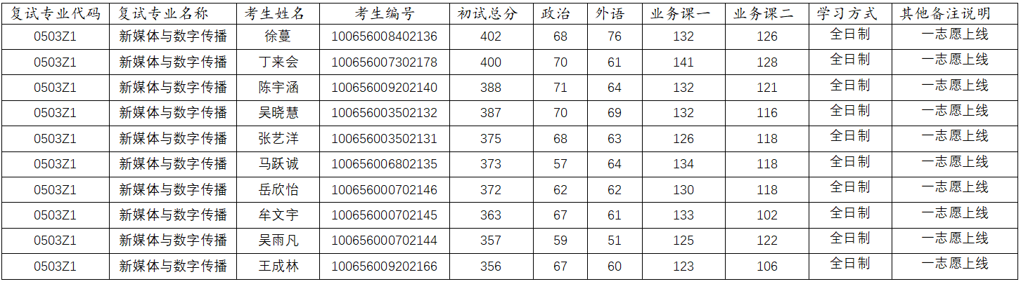 新闻传播学院2026年硕士研究生复试名单公示(新媒体与数字传播)