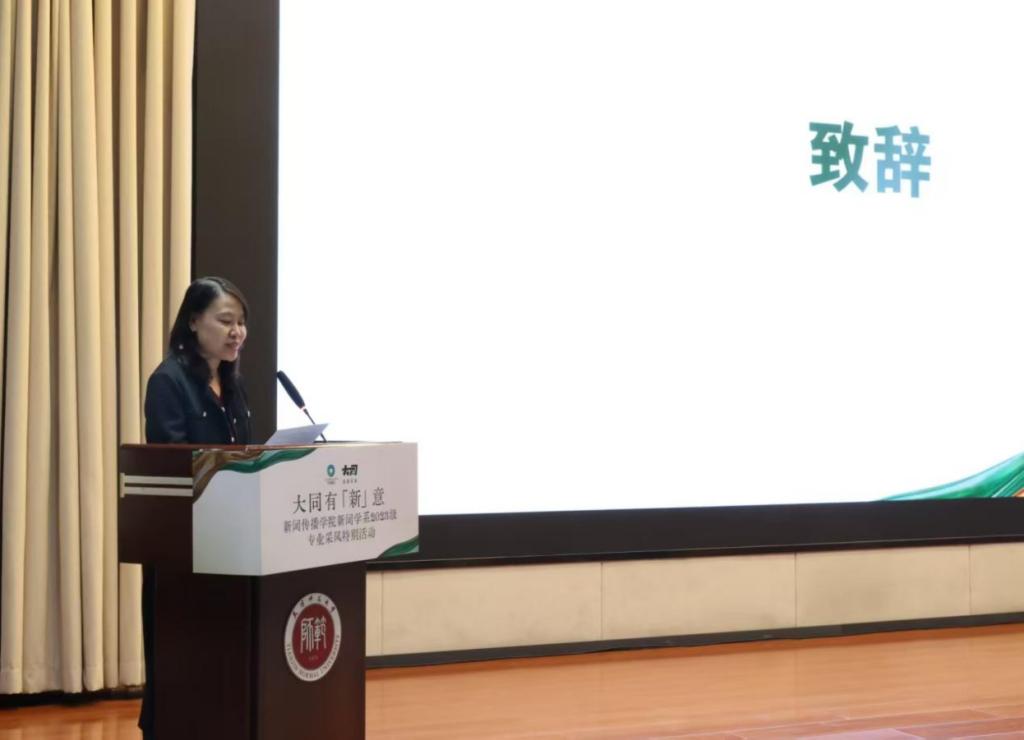 教务处副处长石丽在致辞中对本次采风给予高度评价,她指出,现场洋溢着学子的青春活力与业界的深切关怀,充分印证了采风实践的育人价值。她回顾新闻传播学院在数据新闻、AIGC 应用等领域的全国赛事佳绩,勉励同学们生逢其时、重任在肩,努力成长为兼具家国情怀与专业能力的复合型新闻人才。