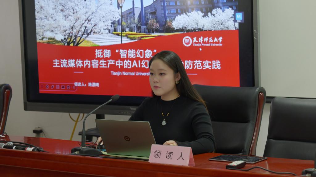 路淏晴同学主要分析了当前主流媒体在内容生产中如何抵御AI幻觉、防范风险。她从AI幻觉的各类基本概念入手,渐进到主流媒体如何从个体到组织层面防控AI幻象。就记者个体而言要始终坚持职业伦理、多维度把关,就媒体组织而言,要提高技能培训赋能力、视觉内容标识力、制度规范实践力。智能传播时代,新闻业的核心竞争力不再是内容生产效率,而是内容真实性的验证与保障能力。主流媒体要始终坚守其公信力,以不可替代的权威性守护真实。