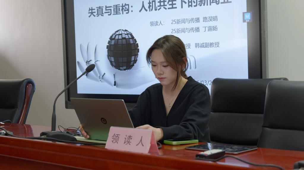 3月26日中午12点30分,本学期第二期“青享”读书会在图书馆C213顺利举行。本次读书会主题为“失真与重构:人机共生下的新闻业”,由2025级新闻与传播专业的路淏晴和丁露旸同学担任领读,指导老师为王芳教授、韩诚副教授,由2024级传播学专业的章思淇同学担任主持。